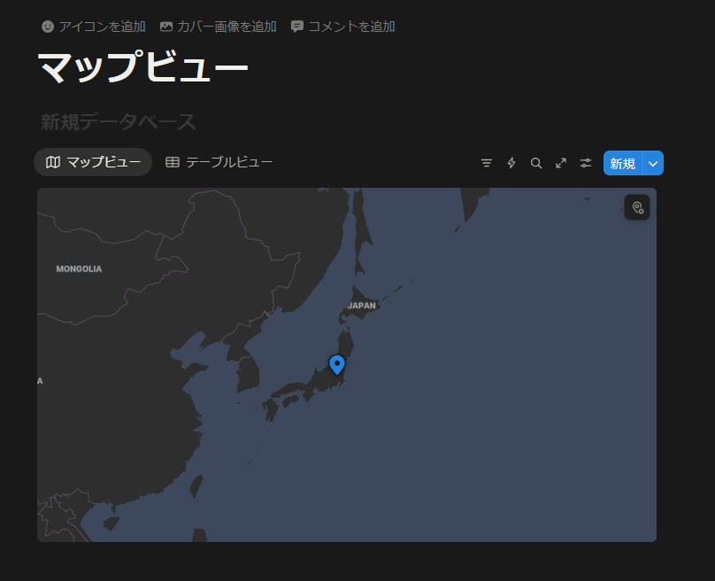 「マップビュー」はNotionのデータベースで使用できるビュー(レイアウト、見せ方)のひとつです。