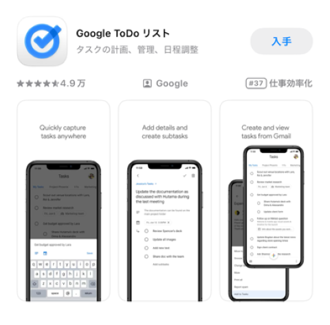 スマートフォン(以下スマホ)ではブラウザを使用してGoogle ToDoリストを開くことも可能ですが、専用アプリを使うことをおすすめします。アプリを使用することで、より手軽にタスク管理ができます。使用開始までの設定も簡単です。