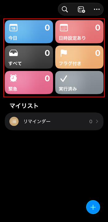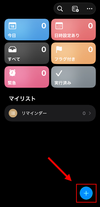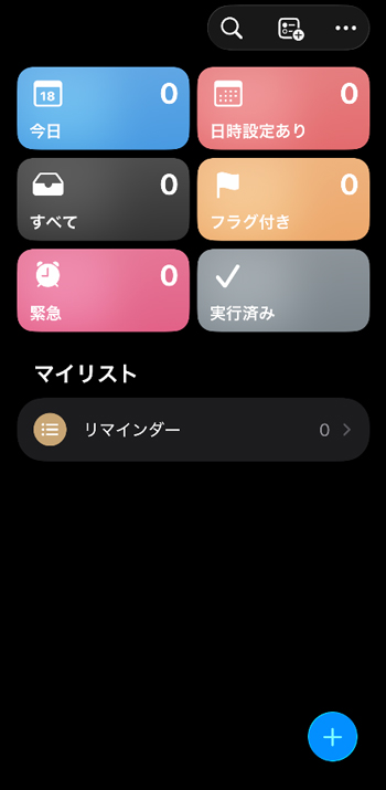 リマインダーアプリの最初の画面にはリストが表示されます。