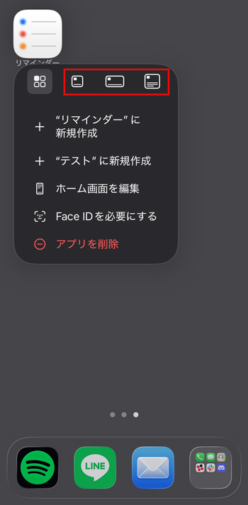 リマインダーアプリは3種類のウィジェット表示ができます。