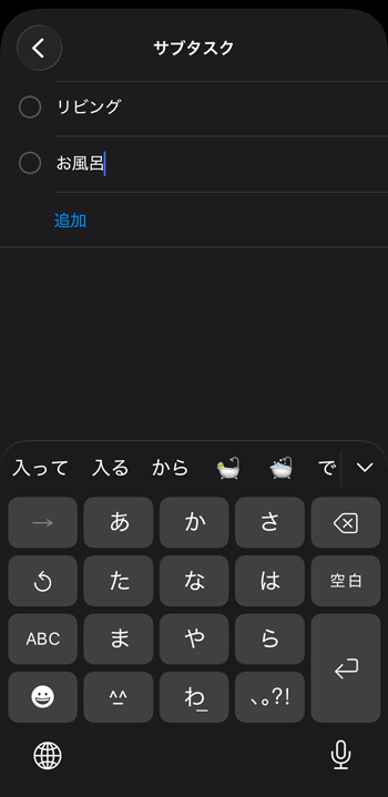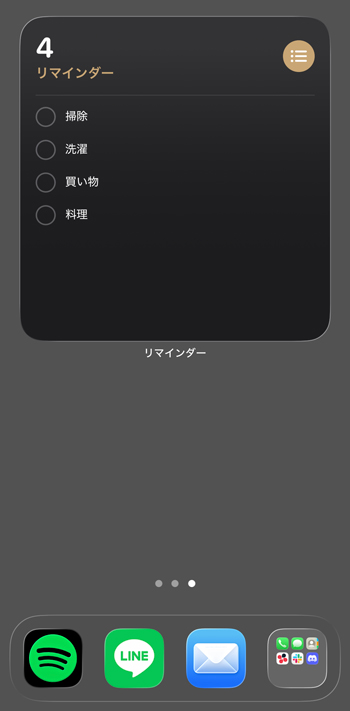 すでに掃除というリマインダーが入っていますが、その下の空いている部分をタップすると、掃除の下に新しいリマインダーが追加されます。