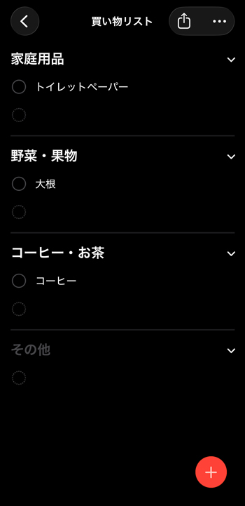買い物リストでリマインダーを作成すると自動的にカテゴリに振り分けられます。