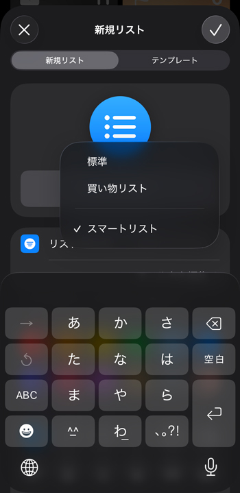 リストを作成する際、リストタイプで「スマートリスト」を選択します。