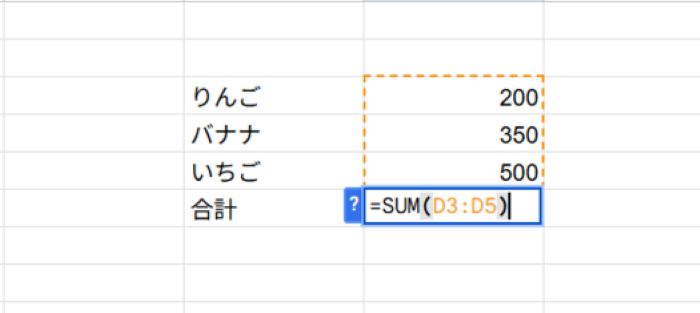 | SUM | 合計を求める | =SUM(A1:A10) |