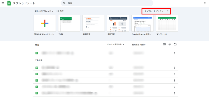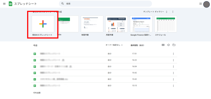 スプレッドシートを開いたら「空白のスプレッドシート」から新しいシートを作成することができます。