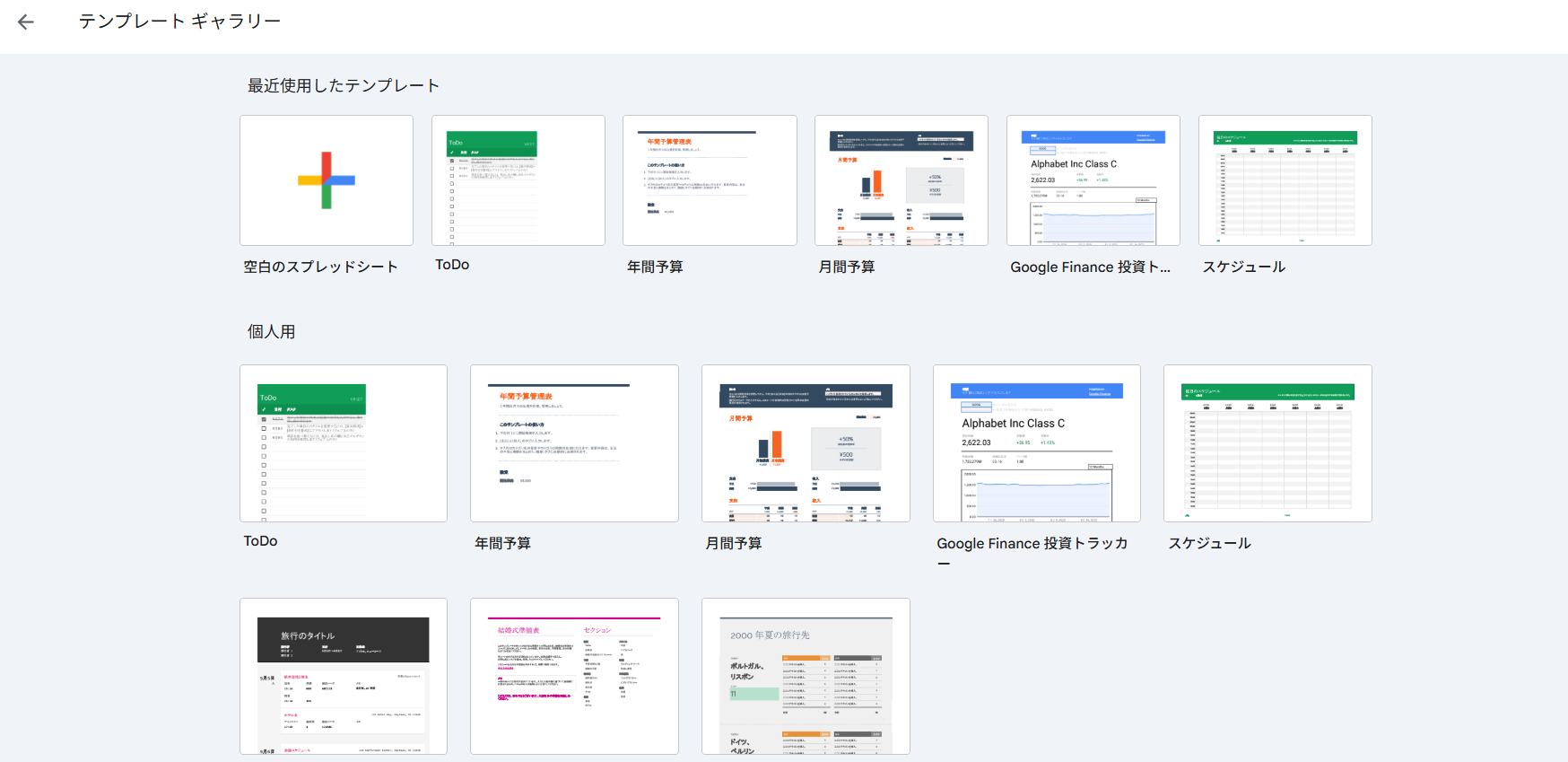 スプレッドシートには、用途に応じたさまざまな公式テンプレートが用意されています。あらかじめフォーマットが整っているため、一から作成する手間を省き、すぐに使い始められる点が魅力です。家計簿やタスク管理、スケジュール管理など、自分の目的に合ったテンプレートを選ぶことで、効率的に作業を進めることができます。